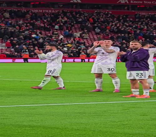 舒梅切尔赛后与拉门斯拥抱,祝贺曼联球员双红会取胜
